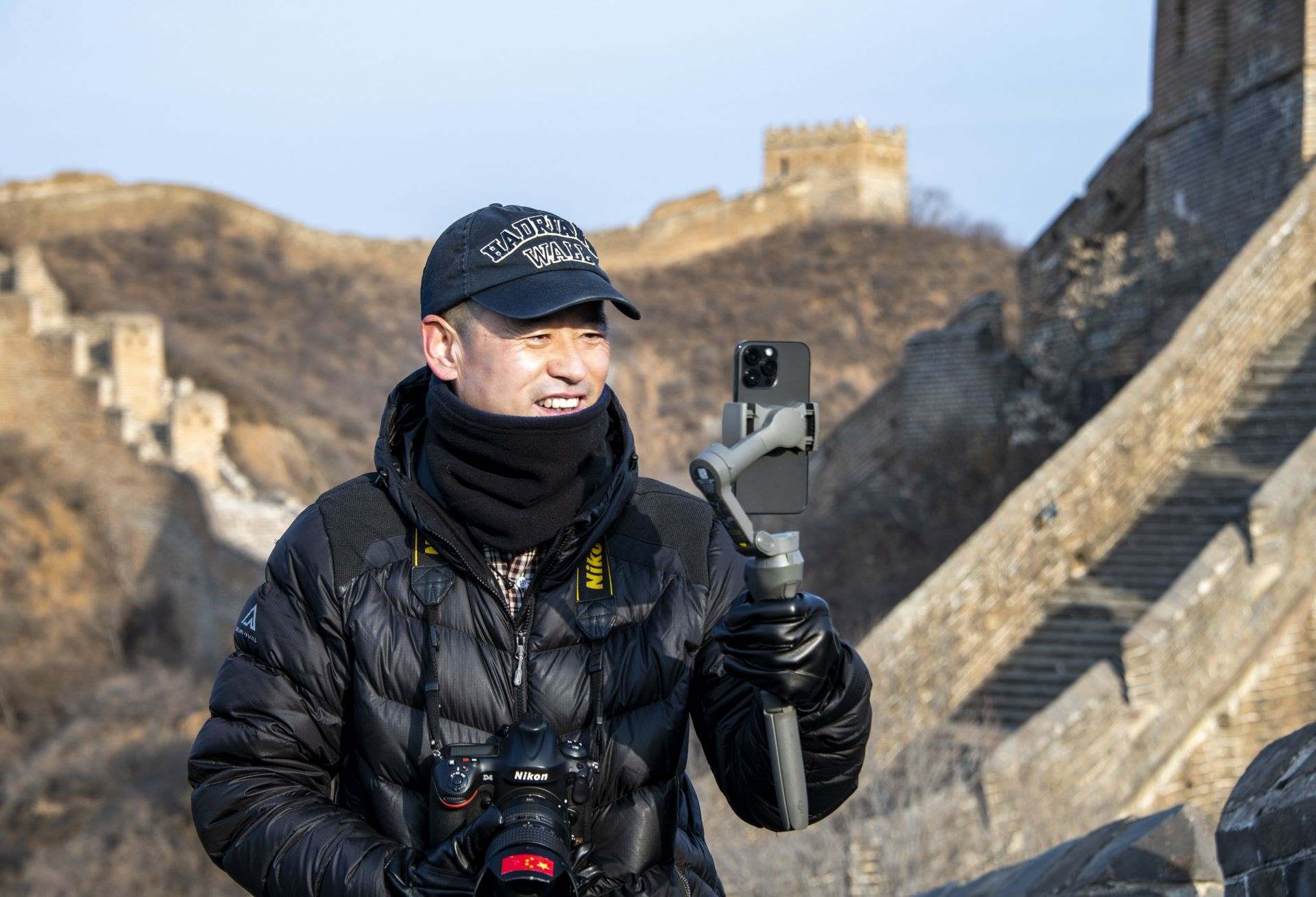3月2日,“長城老郭”登上長城進行直播。紀正權攝