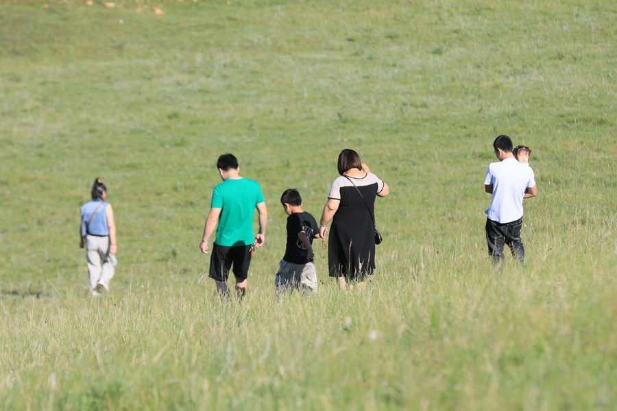 8月2日,游客在烏蘭布統(tǒng)草原游玩