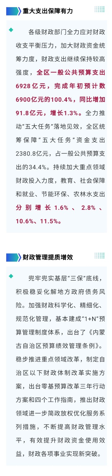 2025年,全區(qū)各級(jí)財(cái)政部門將以習(xí)近平新時(shí)代中國(guó)特色社會(huì)主義思想為指導(dǎo),全面貫徹黨的二十大和二十屆二中、三中全會(huì)精神,按照自治區(qū)黨委和政府的決策部署,堅(jiān)持以政領(lǐng)財(cái)、以財(cái)輔政,圍繞實(shí)施更加積極的財(cái)政政策,著力服務(wù)保障自治區(qū)大事要事,堅(jiān)定不移推動(dòng)貫穿“一條主線”、辦好兩件大事、完成“五大任務(wù)”、實(shí)施“六個(gè)工程”、開展“六個(gè)行動(dòng)”落地落實(shí),為奮力書寫中國(guó)式現(xiàn)代化內(nèi)蒙古新篇章貢獻(xiàn)財(cái)政力量。