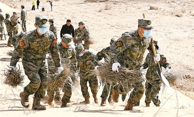 2025年5月6日《中國國防報》第1版刊發(fā)了《內蒙古巴彥淖爾軍分區(qū)發(fā)動民兵參與烏蘭布和沙漠治沙攻堅戰(zhàn) 植樹造林戰(zhàn)“黃龍”》的文章,報道了連日來,內蒙古巴彥淖爾市民兵到烏蘭布和沙漠植樹造林。為植樹造林鎖住“黃龍”,當?shù)剀娒衤?lián)手筑起了一道48公里長的綠色屏障。據(jù)氣象部門數(shù)據(jù)顯示,近年來,當?shù)厣硥m暴、干熱風、浮塵天氣年平均日數(shù)顯著下降。