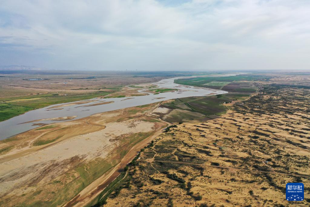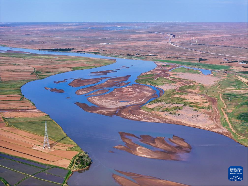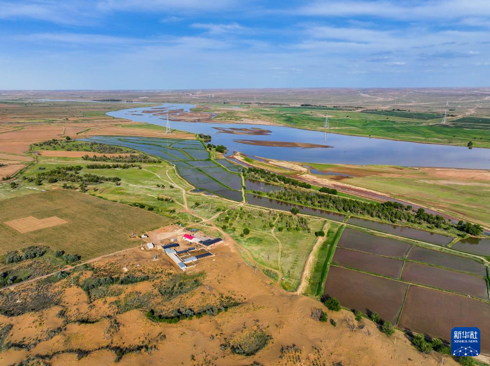 在巴彥淖爾市磴口縣劉拐沙頭,黃河蜿蜒而過(6月5日攝,無人機照片)新華社記者 連振 攝