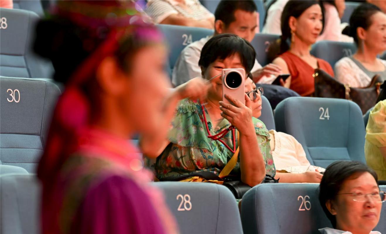 觀眾為烏蘭牧騎隊員拍照。