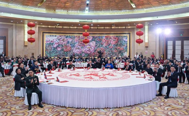新城賓館國宴廳內張燈結彩,與會各界人士互致問候、祝福新春,現(xiàn)場洋溢著歡樂喜慶的節(jié)日氣氛。
