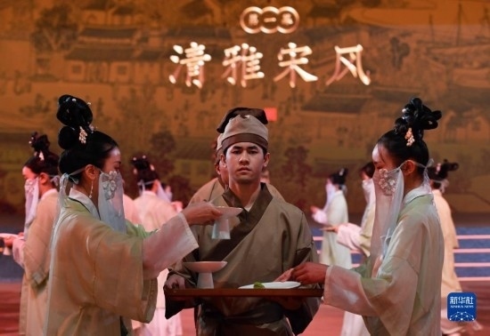 當(dāng)日,福建泉州石獅市舉辦“閩菜地標(biāo)美食城市”授牌暨“宋元海絲宴”推介儀式?!八卧=z宴”以南宋福建泉州石獅籍美食家林洪著作《山家清供》為還原藍(lán)本,兼收閩南名菜,集山珍、海味于一席,將菜品、宴席與宋元器皿、場(chǎng)景、樂(lè)曲、詩(shī)詞等融合,展現(xiàn)宋元時(shí)期世界海洋商貿(mào)中心獨(dú)特的美食文化。新華社記者 魏培全 攝