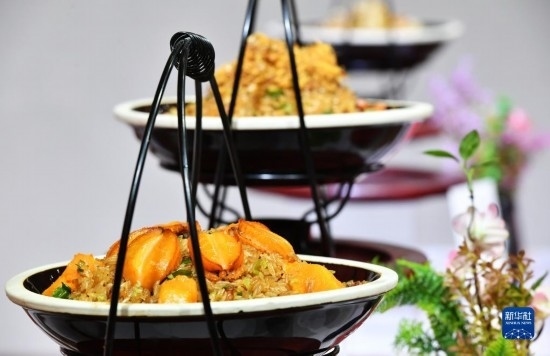 2月22日拍攝的“宋元海絲宴”中的南瓜鮑魚飯。