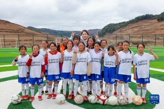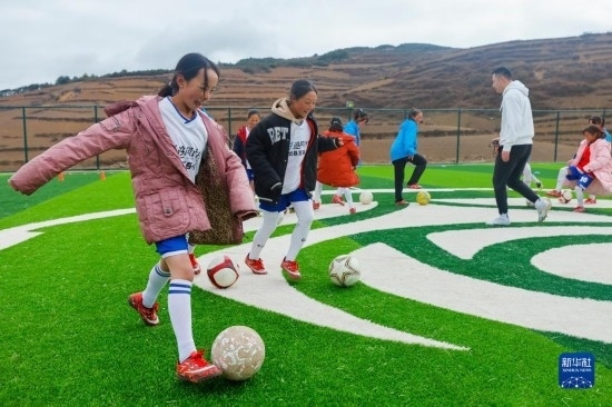 四川省涼山州昭覺縣瓦吾小學(xué)坐落于海拔約2700米的大涼山上,因?yàn)榈乩砦恢闷?、一年四季云霧繚繞而得名“云端小學(xué)”。校長(zhǎng)曲比史古2018年組建女足球隊(duì),希望通過足球讓這些大山里的女孩子收獲快樂,也獲得更多人生可能性。過去幾年,孩子們都是在一片“手工自制”的泥地球場(chǎng)上訓(xùn)練,經(jīng)常受傷。得知瓦吾小學(xué)的情況后,中國(guó)足協(xié)、支付寶以及女足國(guó)腳們決定一起為這支校園女足隊(duì)捐贈(zèng)一座“玫瑰夢(mèng)想球場(chǎng)”。2022年底,全國(guó)第二座中國(guó)女足主題球場(chǎng)——“玫瑰夢(mèng)想球場(chǎng)”在大涼山上落成。