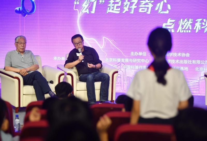科幻有預(yù)言功能嗎?《流浪地球》中“冬眠”那樣的科幻技術(shù)會(huì)影響人類的發(fā)展方向嗎??jī)?yōu)秀科幻作品如何帶給讀者強(qiáng)烈的代入感?昨天,一場(chǎng)科幻大師與中學(xué)生之間的對(duì)話在中國(guó)科幻大會(huì)上演。作為中國(guó)科幻大會(huì)的重要組成部分,“首都青少年科幻嘉年華”在首鋼園和北京科學(xué)中心舉辦,其中的“大師對(duì)話”環(huán)節(jié)邀請(qǐng)著名科幻作家劉慈欣、王晉康,與第42屆北京青少年科技創(chuàng)新大賽科幻畫獲獎(jiǎng)?wù)呒鞍儆嗝袑W(xué)生進(jìn)行了科幻對(duì)話。