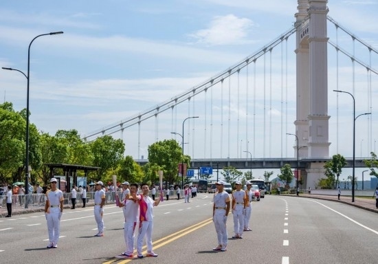 杭州第19屆亞運(yùn)會(huì)舟山站火炬?zhèn)鬟f專項(xiàng)組常務(wù)副組長(zhǎng)李進(jìn)城介紹,整個(gè)線路全程融入了海、港、船、橋等多種海洋元素,通過現(xiàn)代與歷史的交錯(cuò)融合、文旅味與山海味的交相輝映,全方位展現(xiàn)了“海上花園城 自由貿(mào)易港”的大美場(chǎng)景。