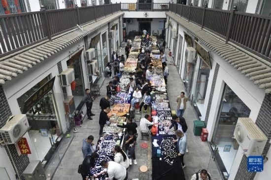 9月25日在禹州市神垕鈞瓷工業(yè)文化園拍攝的古玩市場。