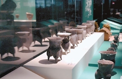 展廳里陳列的陶器等文物。新華社記者 李 安攝