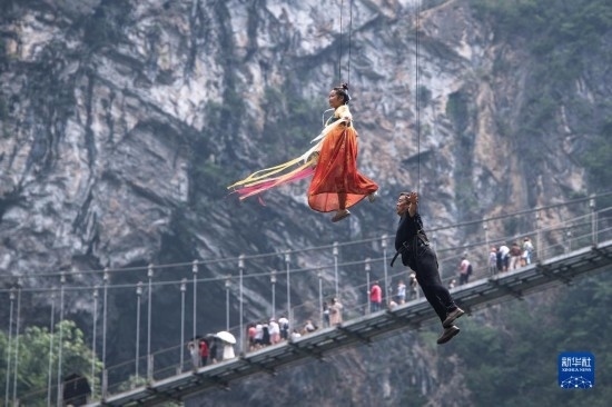 8月20日,游客在湖北省恩施州建始縣地心谷景區(qū)游玩。