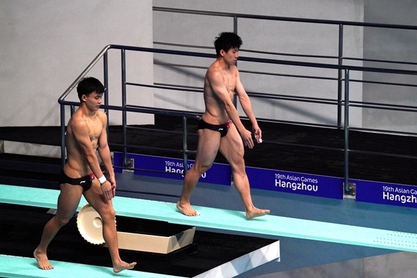 在稍后進行的男子雙人3米板決賽中,經(jīng)過6輪角逐,中國組合嚴思宇/何超以422.55分奪得冠軍,韓國組合李在炅/禹河覽以393.00分獲得亞軍,馬來西亞組合普特/黃茲梁以380.22分獲得季軍。