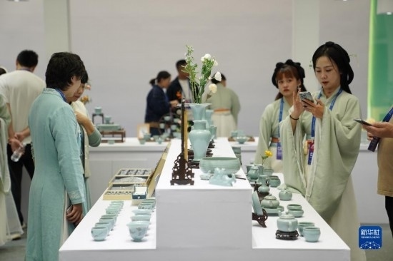 10月18日,人們?cè)诖刹?huì)汝窯展臺(tái)參觀(guān)。