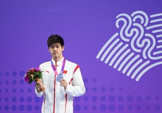 2023年9月27日,亞軍中國選手潘展樂在杭州亞運會游泳項目男子200米自由泳的頒獎儀式上。新華社記者 黃宗治 攝