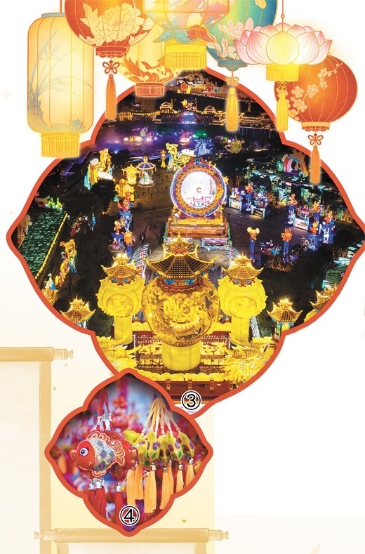 | 圖③:在四川省自貢市中華彩燈大世界舉辦的第三十屆自貢國(guó)際恐龍燈會(huì)亮燈。新華社記者 沈伯韓攝 圖④:在山東省濟(jì)寧市嘉祥縣,富有創(chuàng)意的裝飾掛件營(yíng)造出濃郁的喜慶氛圍。姚 燁攝(人民視覺) |
