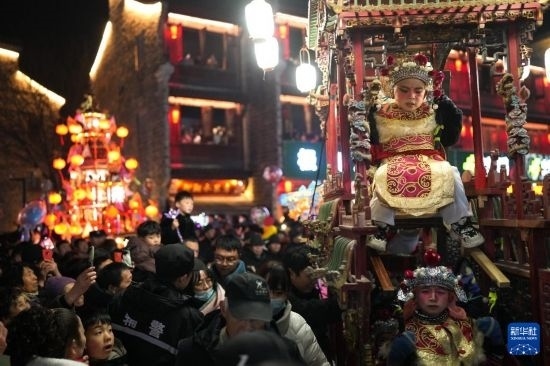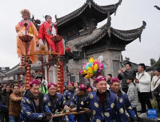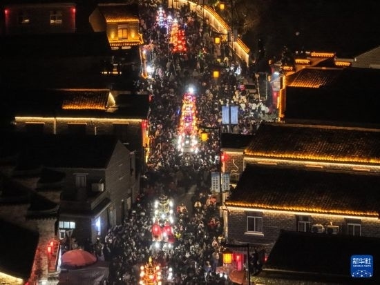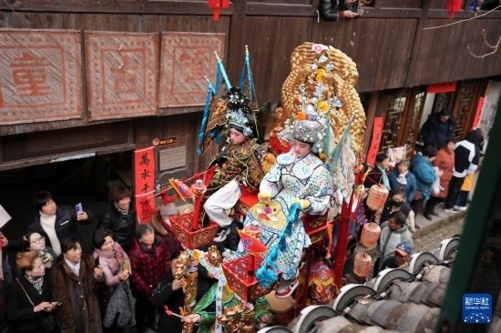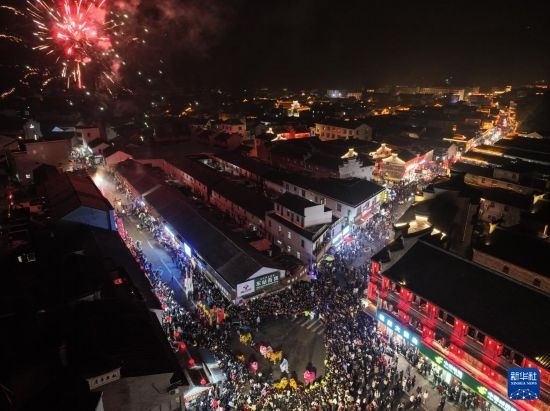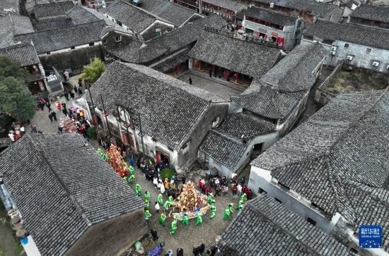當日,有500多年歷史的前童元宵行會在浙江省寧??h前童古鎮(zhèn)舉行。每年正月十四、十五舉行的前童元宵行會始于明中葉,群眾以鳴群鑼、抬鼓亭、放銃花等方式紀念祖先開渠鑿砩、灌溉農(nóng)田的功德,祈愿年景豐收。2014年,前童元宵行會入選第四批國家級非物質(zhì)文化遺產(chǎn)名錄。近年來前童古鎮(zhèn)發(fā)展旅游經(jīng)濟,元宵行會成為展示鄉(xiāng)村振興的重要窗口。