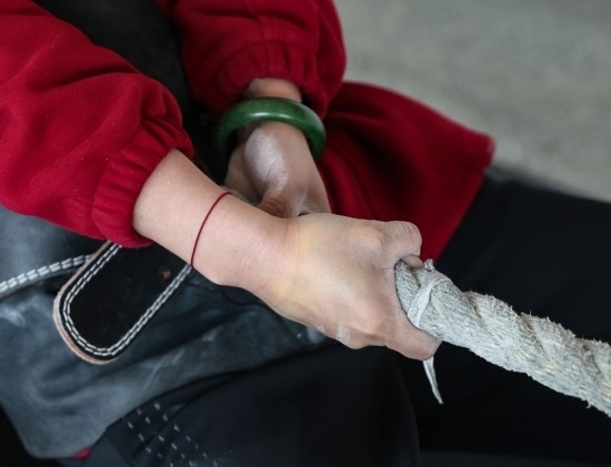 長期的訓練,讓她們每個人的手掌都經(jīng)歷過從磨出血泡到反復脫皮的循環(huán),曾經(jīng)細嫩的雙手長滿了老繭。就連訓練用的麻繩上,都留有被汗水和血水浸漬的痕跡。