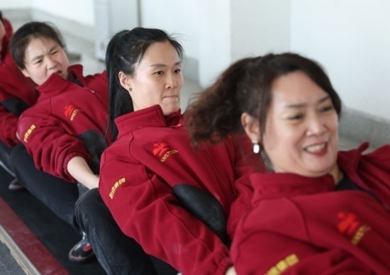 2月29日,鞍鋼集團女子拔河隊在訓練中。新華社記者 龍雷 攝