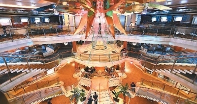遠(yuǎn)觀“愛達(dá)·魔都號(hào)”,層疊密布的艙室和舷窗能承載5246人;走進(jìn)船體內(nèi)部,高達(dá)16層、超過4萬平方米的生活?yuàn)蕵穮^(qū)域內(nèi),劇場(chǎng)、泳池、健身房、餐廳、畫廊等娛樂設(shè)施應(yīng)有盡有,儼然是一座“移動(dòng)的海上城市”。