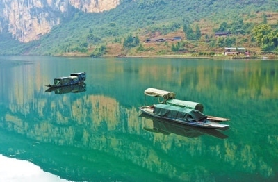 兩岸青山夾碧水,一江青綠被畫舫式的動力渡船攪出漣漪?!皝?,帶你體驗下啥子叫水上人家!”酉陽縣住建委副主任劉繼明熟練地接過“船把式”拋來的纜繩,牽引著熄火后的船緩緩靠岸,以免船底與碼頭石階磕碰,接著一躍登船,又把記者拉上去。