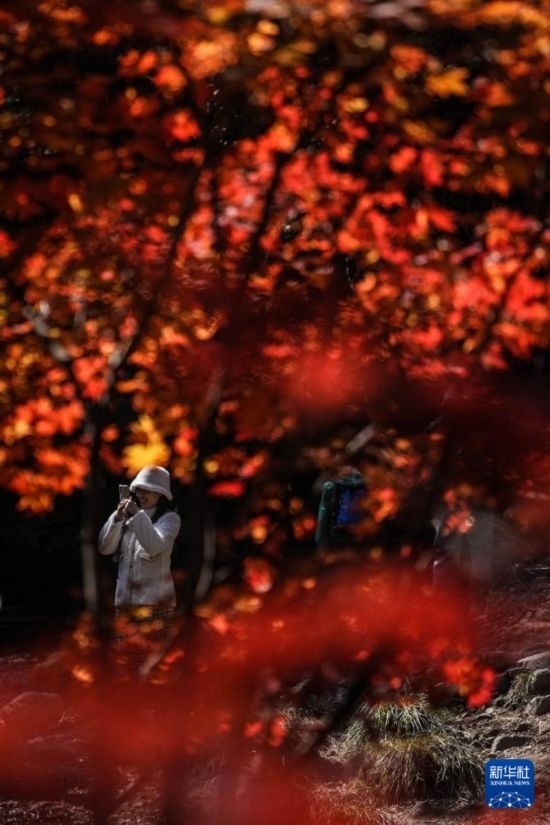 10月7日,遼寧本溪老邊溝風(fēng)景區(qū)內(nèi)的楓樹(shù)正值最佳觀賞期,很多游客來(lái)到這里觀賞金秋“楓”景。