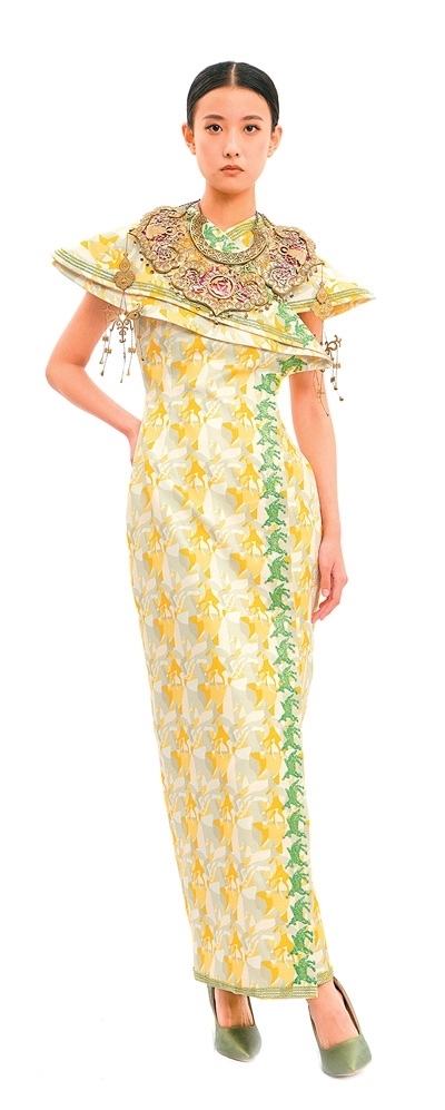 崔榮榮團隊為“中法時尚之約:絲路遺產(chǎn)創(chuàng)新設計時裝發(fā)布會”設計的“絲綢之路”禮服。