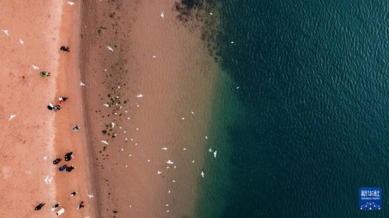 1月12日,游客在撫仙湖邊游玩(無人機照片)。