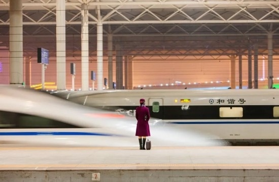 2018年春運,完成值乘任務(wù)的復(fù)興號列車長開心退乘。