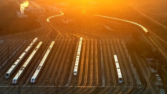 除夕當(dāng)天,石家莊動車運用所被金色的晨曦照亮。
