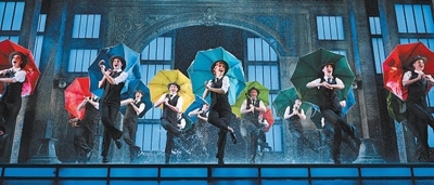 1952年,美國好萊塢經(jīng)典歌舞電影《雨中曲》上映,成為世界電影史上的不朽佳作。1983年,改編自電影的同名音樂劇在英國倫敦西區(qū)首演,并在此后的10余年間獲得諸多獎項。2012年6月末的一天,我坐在倫敦皇宮劇院第一排,整晚在《雨中曲》水樣的浪漫氛圍中旋轉(zhuǎn)。2025年初春,這部音樂劇來到北京,最迷人的記憶依然是結(jié)尾處將觀眾“浸沒”的那場大雨。