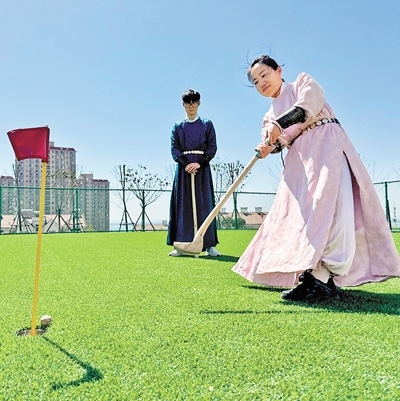 “捶丸入門不難,但想玩得好,無論擊球角度還是力度,都有門道?!睂W(xué)生李海寧說。有高爾夫練習(xí)基礎(chǔ)的曲曉波是平頂山學(xué)院的一名體育教師,她接觸捶丸運動后,便深深著迷,“捶丸不僅玩法多樣,還十分講究禮儀,比如擊球前要行禮、觀賽者需保持靜默,這也體現(xiàn)了中國人尚禮的文化傳統(tǒng)。”