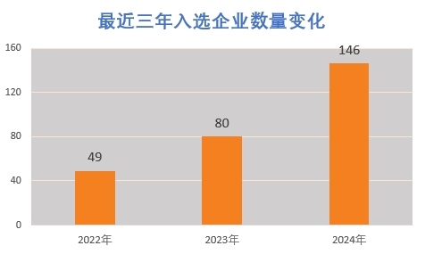 據(jù)了解,入選企業(yè)評選標(biāo)準(zhǔn)非常嚴(yán)格,需同時滿足專業(yè)化、精細化、特色化、創(chuàng)新能力、產(chǎn)業(yè)鏈配套等多個指標(biāo)。盡管如此,2024年名單中的企業(yè)與2022年49家和2023年80家相比,大幅增加到146家。