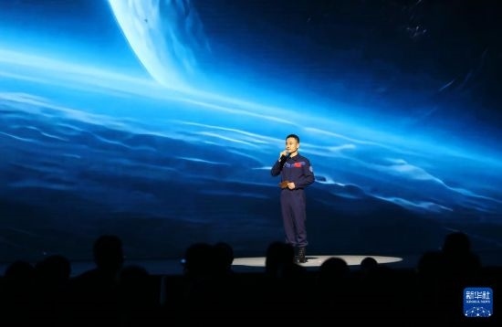 5月30日,在第四屆文明交流互鑒對話會開幕式上,神舟十七號航天員唐勝杰進行《飛天筑夢:從莫高窟到空間站》主題展示。
