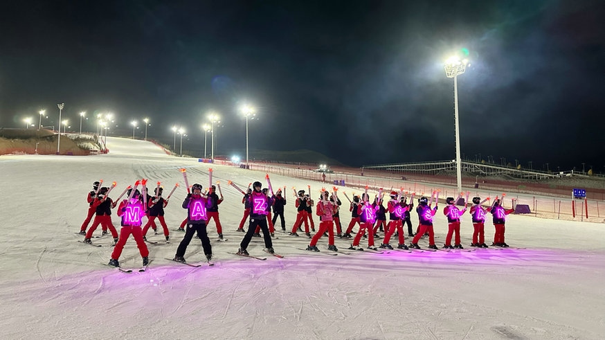 岱海國際滑雪場地處臥佛山北坡,位于北緯40°—42°之間,這里最高海拔2100米,雪道落差500米,雪道面積400000余平方米,雪道總長度14000余米,擁有國際標(biāo)準(zhǔn)越野賽道和單板標(biāo)準(zhǔn)U型槽以及“貓?zhí)被┑溃∕ogul Slope)和“波浪道”等比賽場地。(圖源/烏蘭察布文聯(lián))