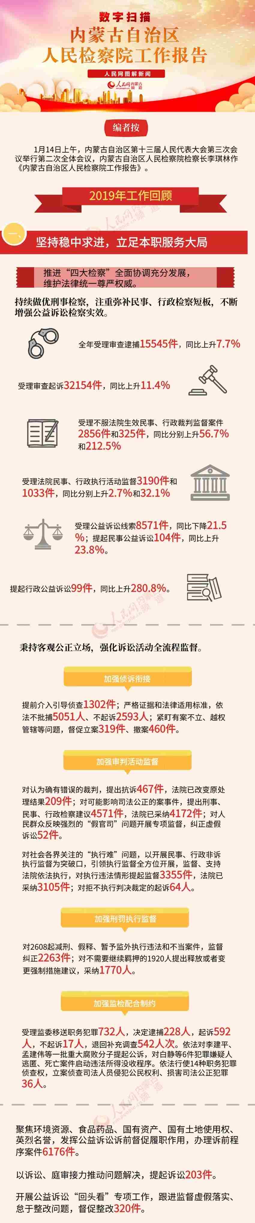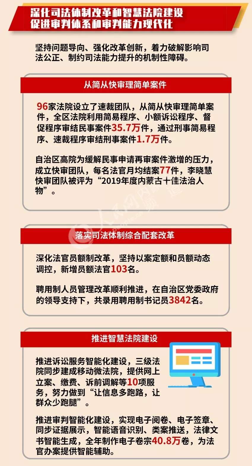 會(huì)上,內(nèi)蒙古自治區(qū)高級(jí)人民法院院長(zhǎng)楊宗仁作《內(nèi)蒙古自治區(qū)高級(jí)人民法院工作報(bào)告》,內(nèi)蒙古自治區(qū)人民檢察院檢察長(zhǎng)李琪林作《內(nèi)蒙古自治區(qū)人民檢察院工作報(bào)告》?!皟稍骸惫ぷ鲌?bào)告都有哪些看點(diǎn)?今年兩會(huì),小編繼續(xù)帶您看圖說(shuō)兩會(huì)。