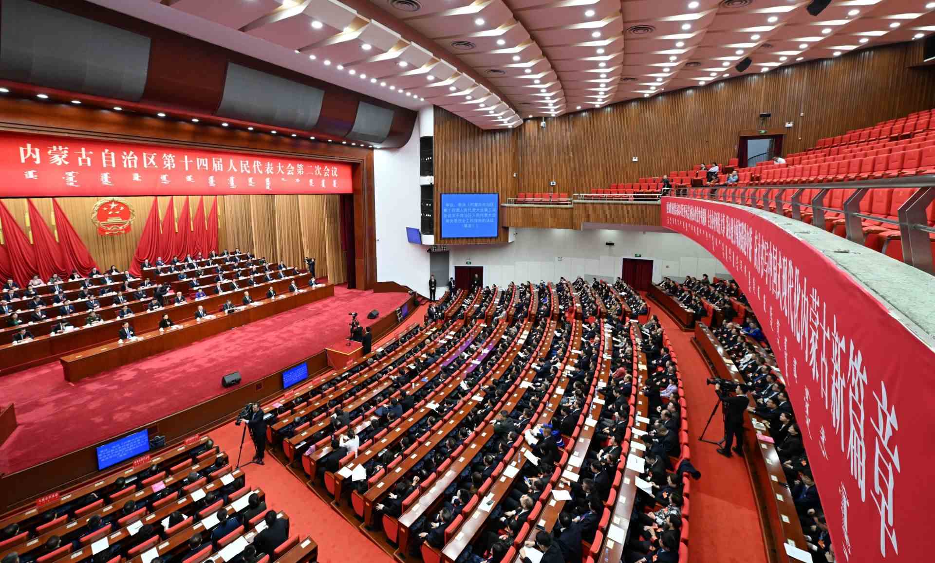 2月2日下午,自治區(qū)十四屆人大二次會(huì)議圓滿完成各項(xiàng)議程,在內(nèi)蒙古人民會(huì)堂勝利閉幕。本次大會(huì)審議批準(zhǔn)了人大常委會(huì)工作報(bào)告和“一府兩院”工作報(bào)告等6個(gè)報(bào)告,審議通過(guò)了關(guān)于修改內(nèi)蒙古自治區(qū)人民代表大會(huì)及其常務(wù)委員會(huì)立法條例的決定,圓滿完成了選舉任務(wù)。會(huì)議期間,全體人大代表肩負(fù)著全區(qū)各族人民的重托,認(rèn)真履行憲法和法律賦予的職責(zé),發(fā)揚(yáng)民主、履職擔(dān)當(dāng)、建言獻(xiàn)策、共商大計(jì)。代表們紛紛表示,要牢記囑托、感恩奮進(jìn),以鑄牢中華民族共同體意識(shí)為各項(xiàng)工作的主線,砥礪前行、苦干實(shí)干,為奮力書寫中國(guó)式現(xiàn)代化內(nèi)蒙古新篇章貢獻(xiàn)力量。