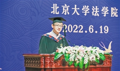 “畢業(yè)之后,我將回到家鄉(xiāng),為祖國(guó)北疆發(fā)展奉獻(xiàn)自己的青春力量?!痹诒本┐髮W(xué)法學(xué)院畢業(yè)生歡送典禮上,賈平煊代表本屆畢業(yè)生發(fā)言。