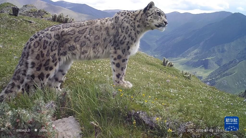 這是三江源國家公園內(nèi)紅外相機(jī)捕捉到的雪豹(2020年7月3日攝)。