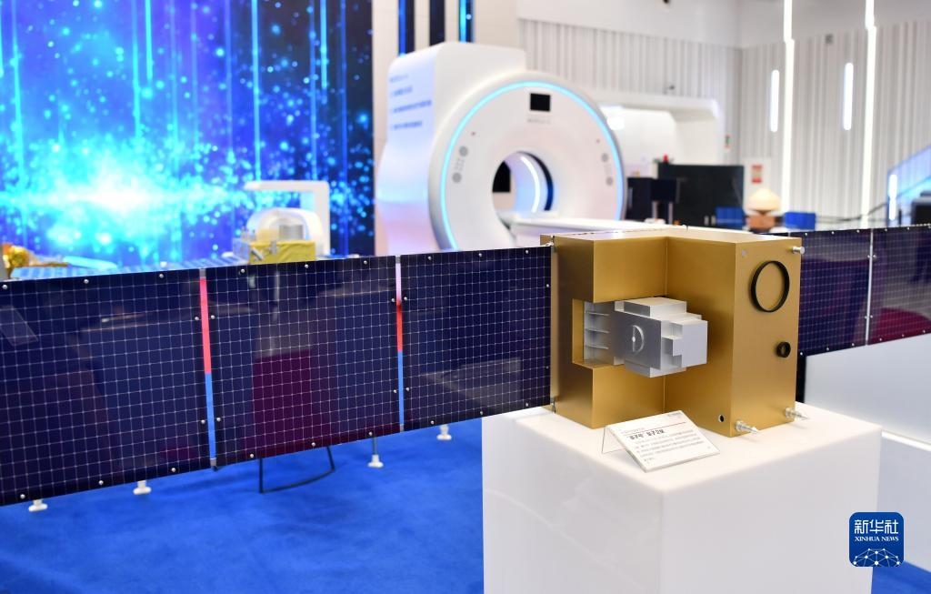 在安徽創(chuàng)新館拍攝的“墨子號(hào)”量子衛(wèi)星模型(2020年8月25日攝)。新華社記者 劉軍喜 攝