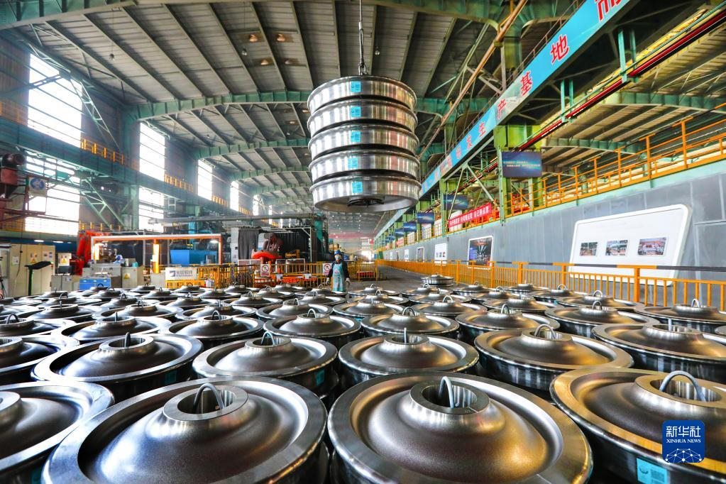3月3日,在中國(guó)寶武馬鋼一車(chē)輪生產(chǎn)車(chē)間,成品車(chē)輪在吊裝準(zhǔn)備發(fā)貨。新華社發(fā)