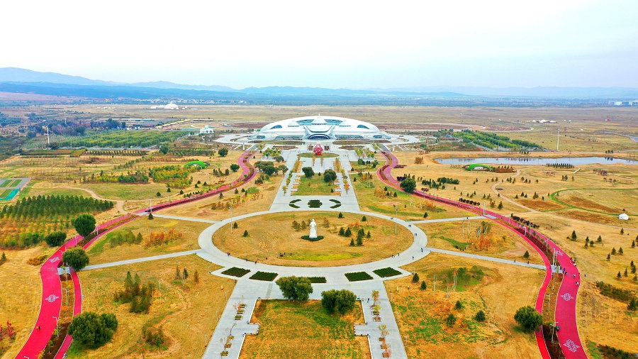10月7日,空中俯瞰內(nèi)蒙古少數(shù)民族群眾文化體育運(yùn)動中心。